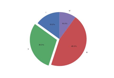 plt.pie(X, explode=explode, labels=labels, autopct='%1.1f%%', startangle=90)